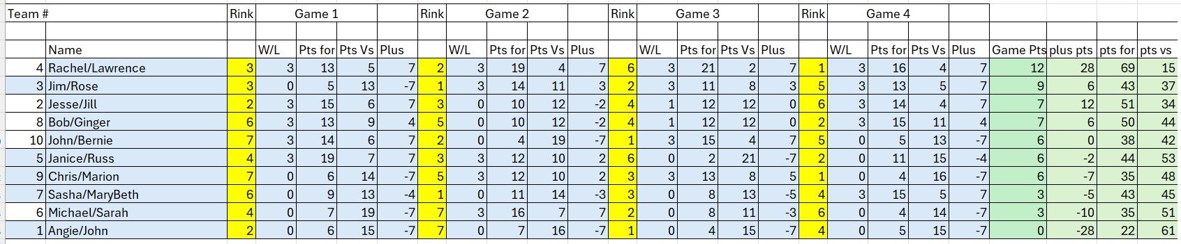 First Place: Rachel Marcuson and Lawrence Quill from Santa Cruz. Second Place: Jim Corr (Berkeley) and Rose Selby (Palo Alto). Third Place: Jesse May and Jill Wynn from Santa Cruz. This was an outstanding performance by the Santa Cruz bowlers. Santa Cruz is one of our smaller clubs by total membership, yet 4 of the 6 prize winners came from SCLBC on this day! Congrats! Note from Tournament Director Rachel Marcuson: Thank you to everyone who came out today, and a special thanks to Muriel, Mike, Mark, Marge, and the San Jose Lawn Bowling Club for hosting.. This event marks the first of six that will count toward Bowler of the Year standings, which will also be shared on the website. We always appreciate feedback—feel free to email me or Calvin directly, and we’ll make sure your comments are passed along to the tournament committee.